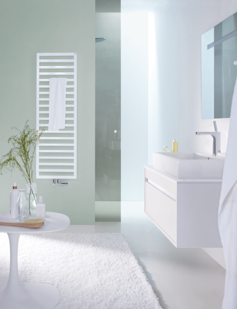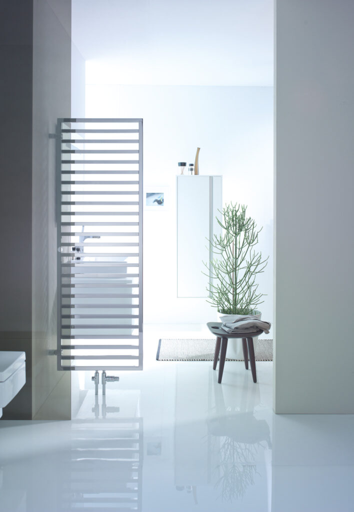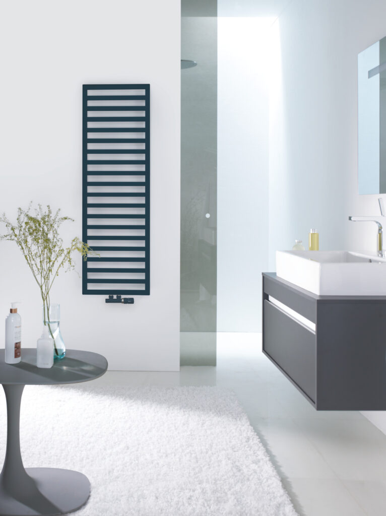 Tvarově čistý design s rovnoměrně vzdálenými trubkami působí harmonickým dojmem. Nevnucuje se, nýbrž podřizuje. Perfektně se hodí do moderní koupelny. Nadčasový design s geometrickým tvarem přesvědčuje také ve verzi pro rozdělení prostoru a v provedení pro kombinovaný a elektrický provoz s opticky sladěnou topnou tyčí.