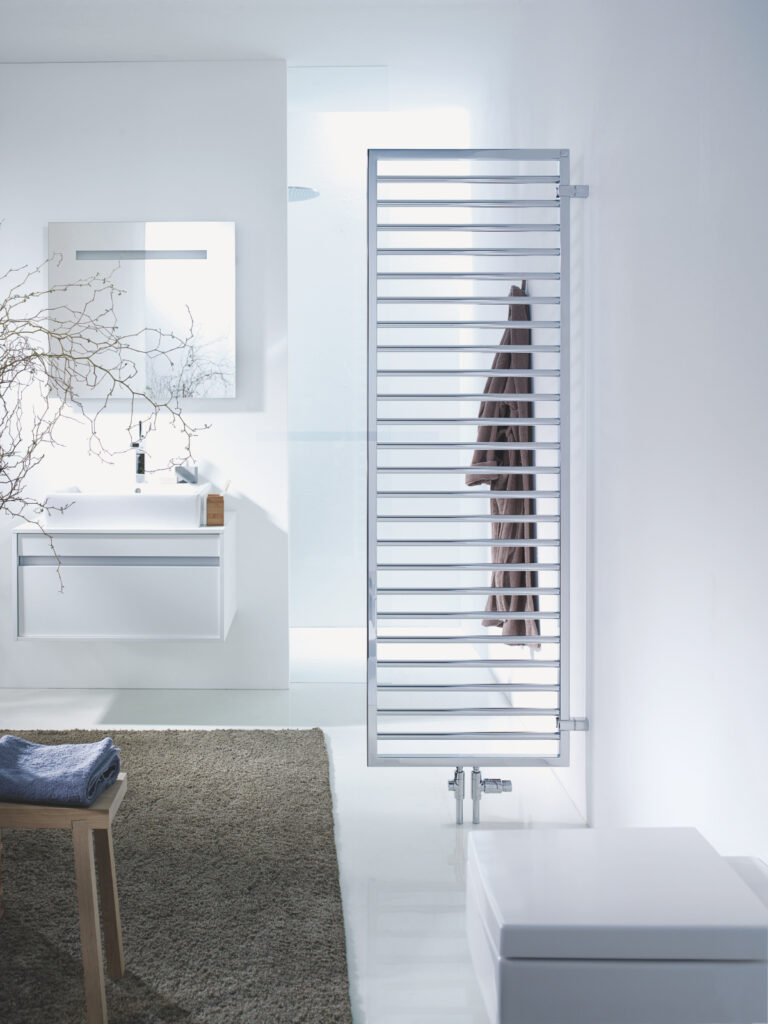 Stylový a čistý design bez kompromisů. Pravoúhlý rám a jemné kulaté vodorovné trubky rovnoměrně vzdálené působí harmonicky. Vytváří krásný designový objekt. Nabízí možnost sušení více ručníků najednou. Na přání provedení pro rozdělení prostoru. Vhodný pro teplovodní,kombinovaný a elektrický provoz. K dostání v mnoha barvách, chromovaném a nerezovém provedení.