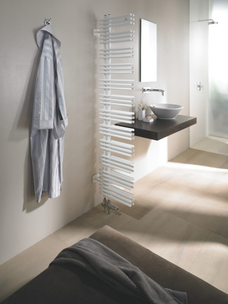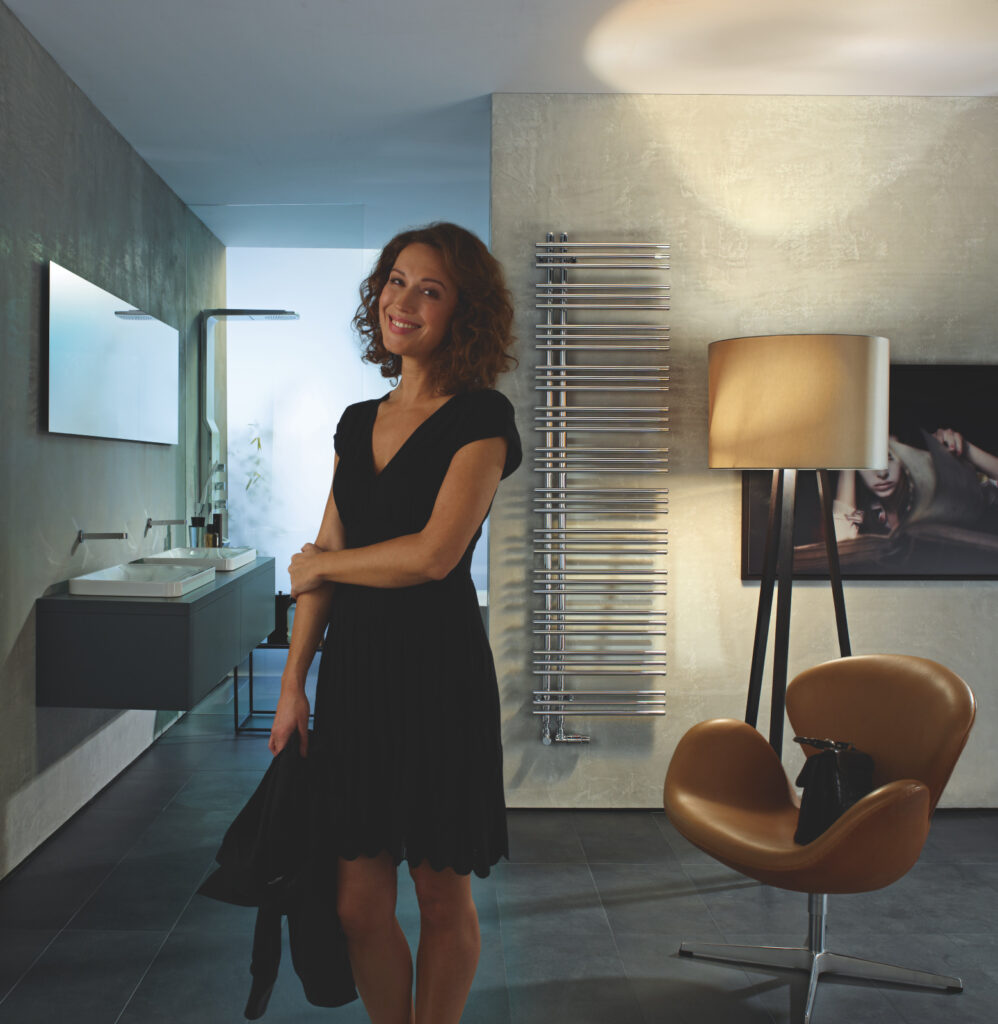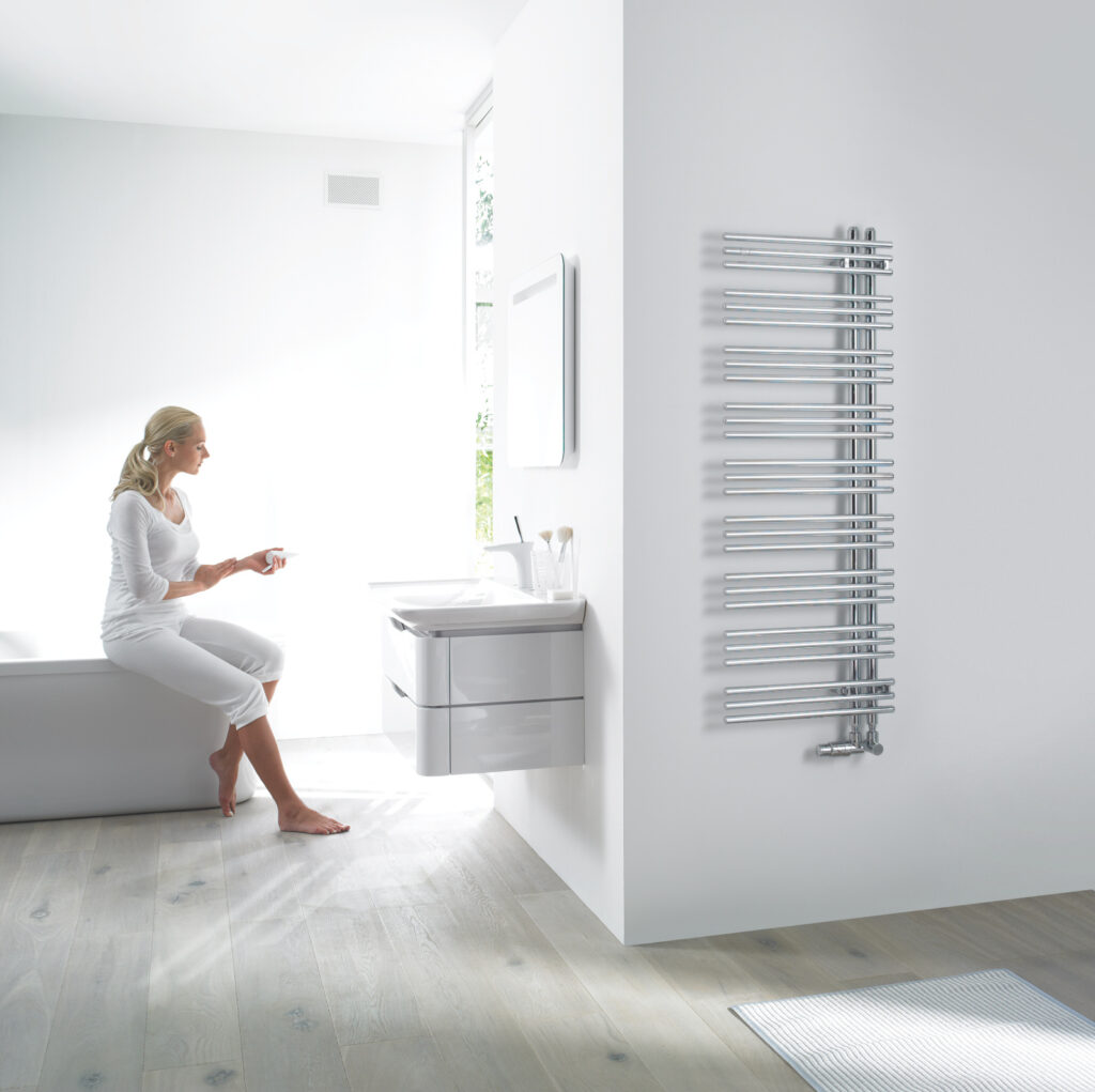 Tento asymetrický designový radiátor je opravdovým bestsellerem. Výjimečně elegantní a praktický design v nejvyšší kvalitě. Oživí prostředí každé koupelny. Umožňuje pohodlné zavěšení ručníků ze strany. Jejich sušení se stane radostí pro celou rodinu. Patentovaná konstrukce zaručuje průtok topného média ve všech vodorovných trubkách a díky tomu vytápění v celém radiátoru.