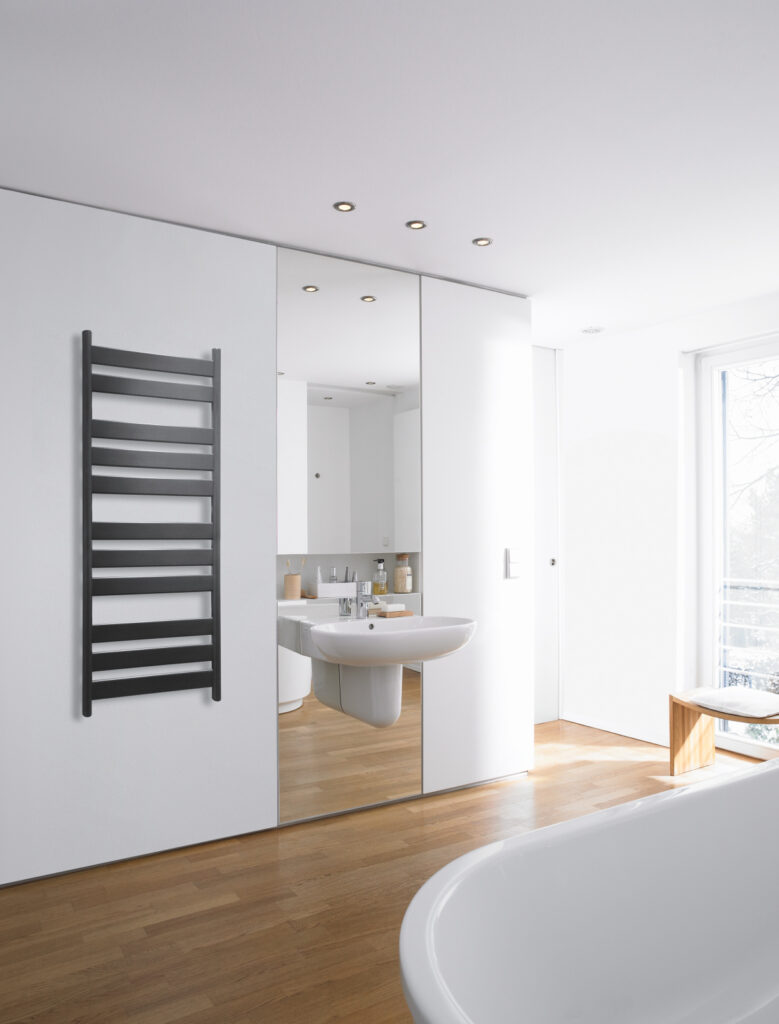 koupelny moderní vzhled a funkčnost. Velkorysý prostor mezi sadou vodorovných trubek a jejich větší vzdálenost od zdi pro snadné zavěšení a rychlejší sušení ručníků. K dispozici v barvě bílé, Anthracite a s vysoce kvalitním