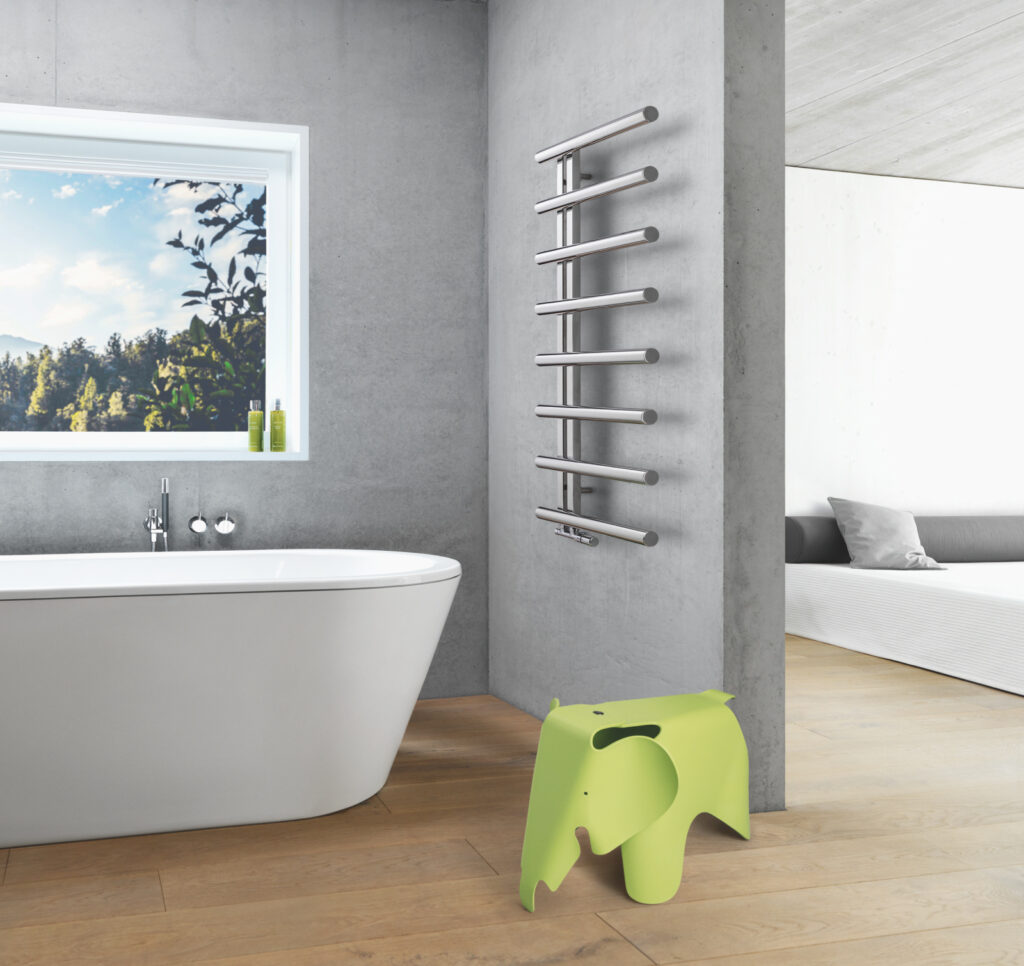 Atlet ve světě radiátorů – výkonný, sebejistý design, skládající se z elegantně zaoblených kulatých trubek. Volný přístup ze strany umožňuje pohodlné nasunutí a sušení i velkých osušek. Zehnder Chime: je vyroben z ručně leštěné, vysoce kvalitní nerezové oceli a lze volit provedení levé nebo pravé. Zehnder Chime z programu Studio Collection: asymetrický radiátor s kulatým designem, vyrobený z ručně leštěné, vysoce kvalitní nerezové oceli. Může být instalován s vodorovnými trubkami vlevo nebo vpravo. Zehnder Chime oživí vaši koupelnu svou výrazností a přináší dodatečný bonus v podobě krásně nahřátých ručníků.